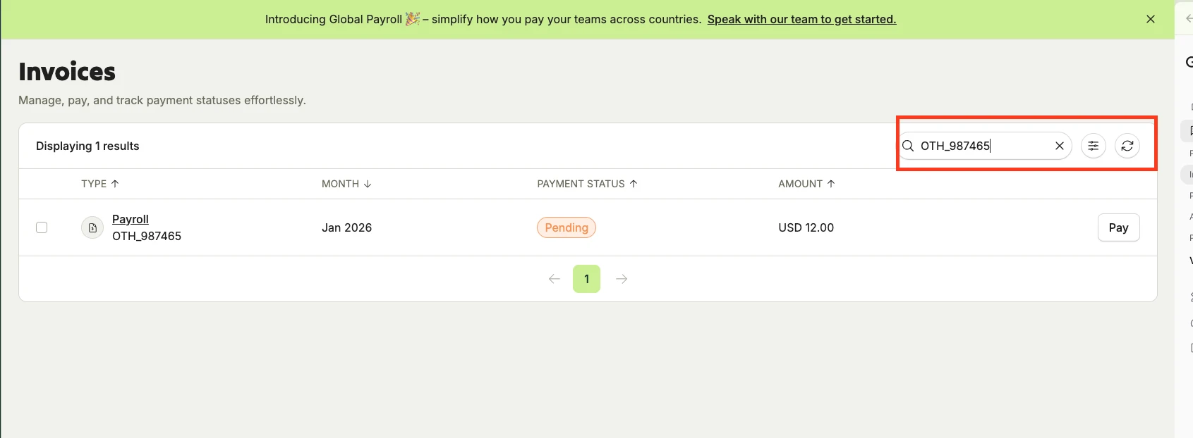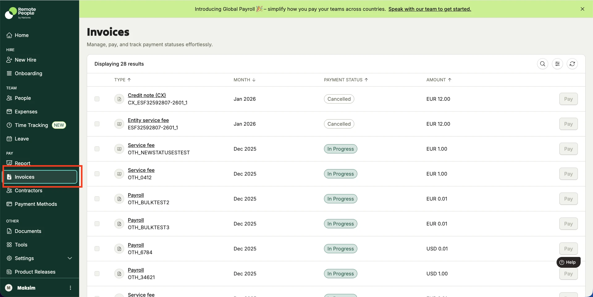 Once you log in to our platform, you’ll find the “Invoices” option on the left-side menu under the Pay section.