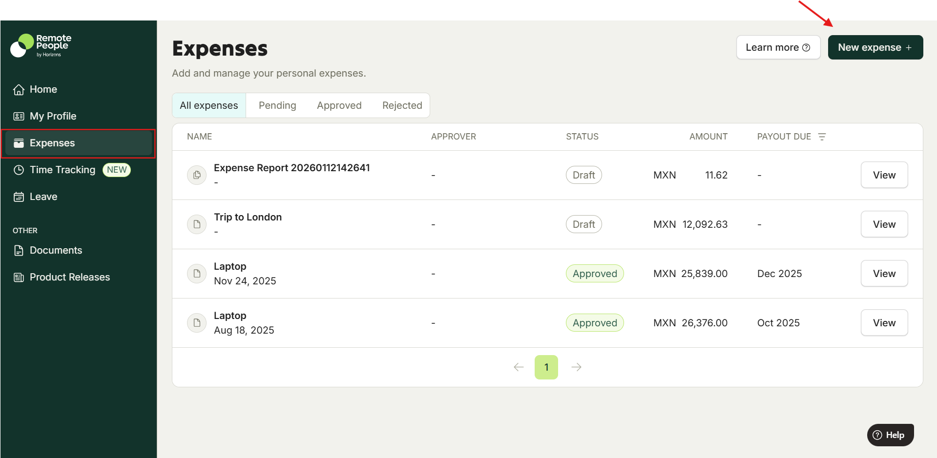 - On the right corner, click New Expense.