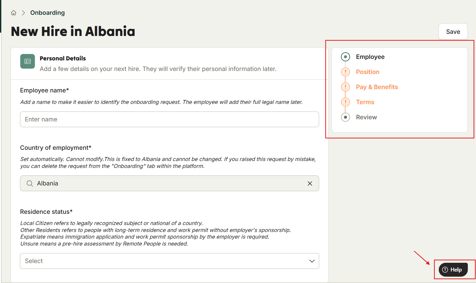 Our user-friendly onboarding workflow will guide you through local specifications. If you're unsure about any step, click the ‘Help’ button at the bottom right of the platform. Our local onboarding specialists are ready to assist.