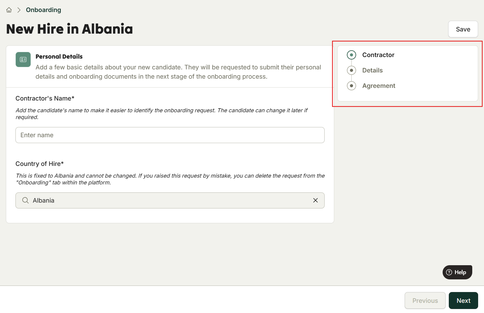 Select whether you are hiring a Full-Time Employee or a Contractor.