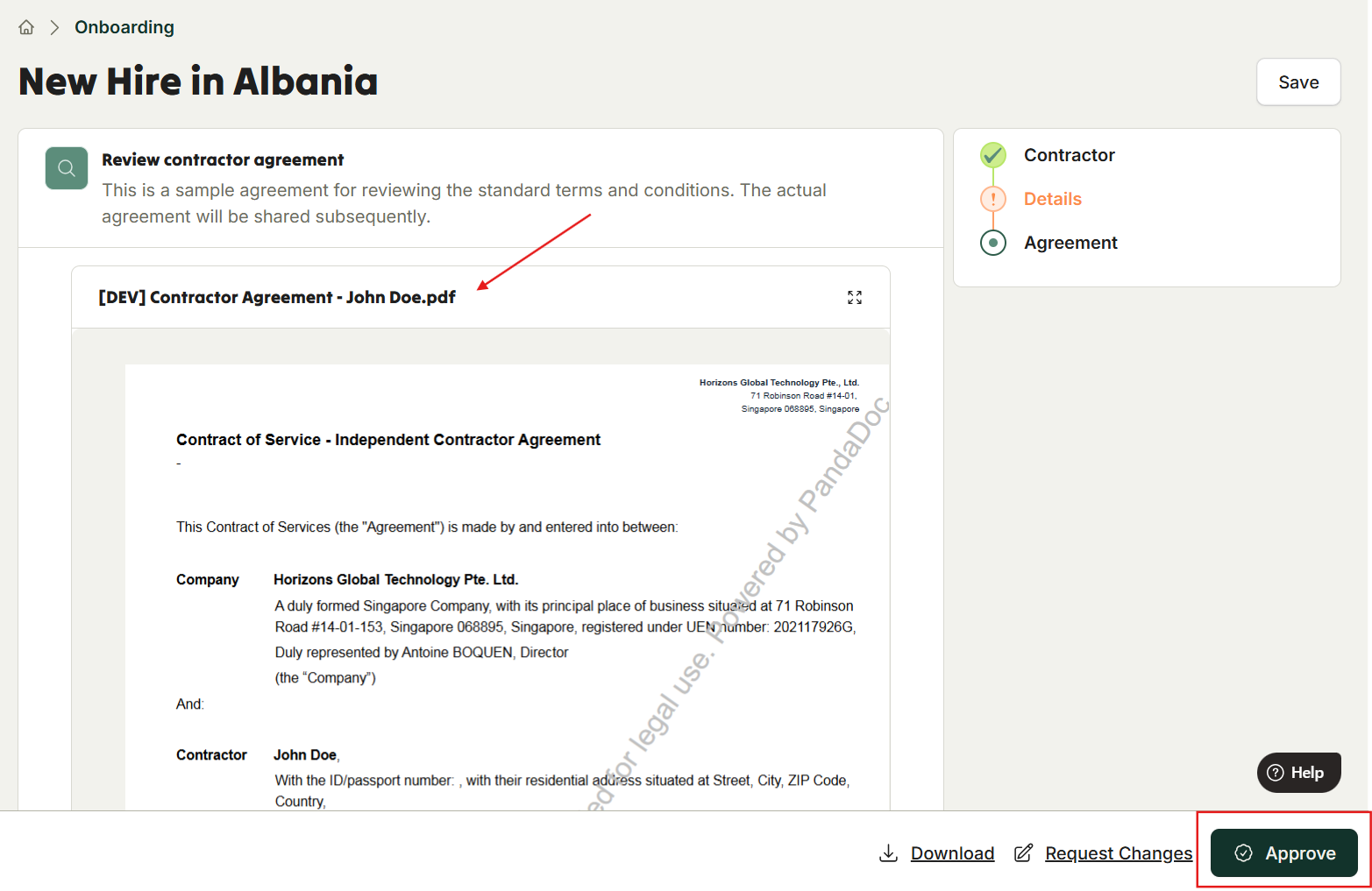 After submitting the details, Horizons will generate a locally compliant employment contract within 24 hours.