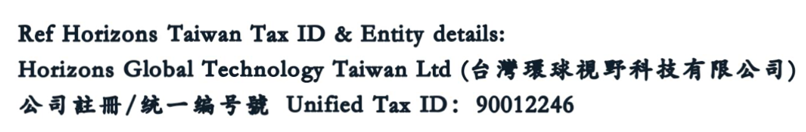- Reimbursements must be based on invoices issued to Horizons Taiwan: