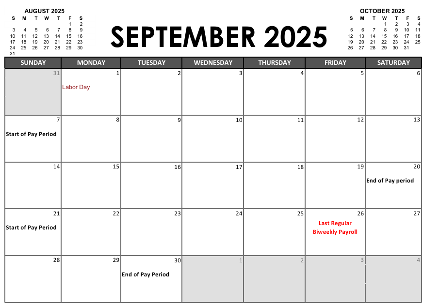 - Final Biweekly Payroll: September 26, 2025 (covers Sept 8–21)